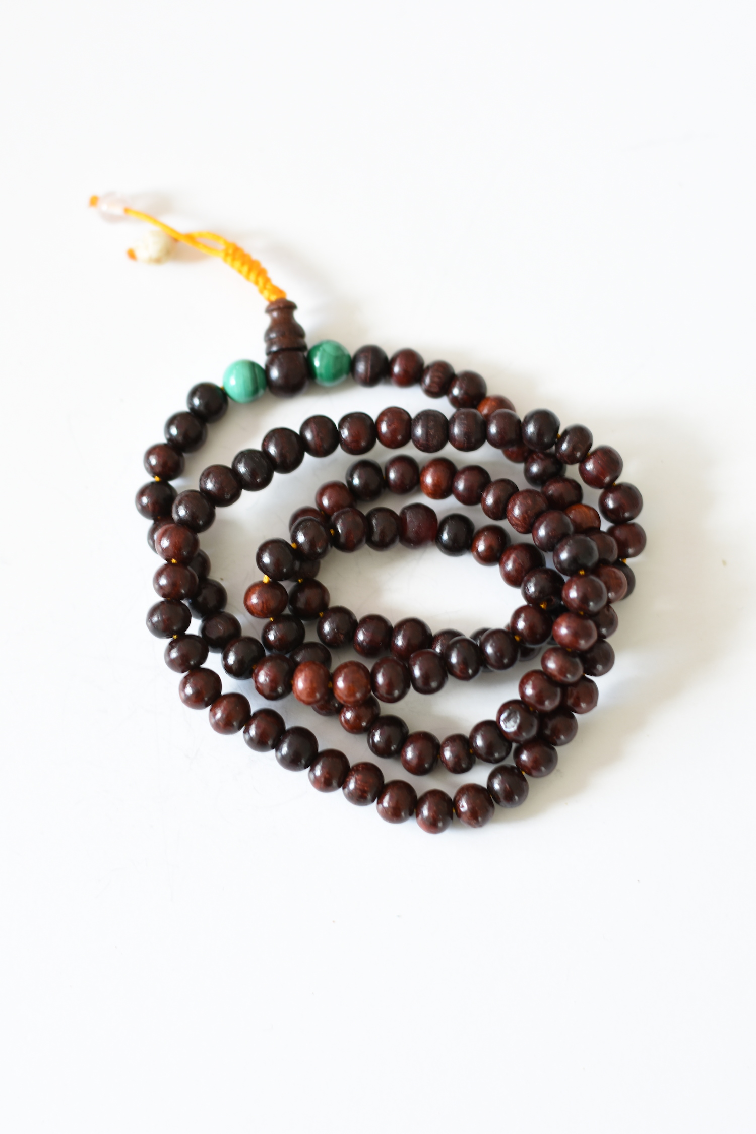 Wunderschöne Mala mit Rosenholz-Perlen und Mineralstein-Verzierung. Unsere beliebten Designs bestehen aus echten Rosenholz-Perlen sowie echten Mineralsteinen (Farben und Stein-Arten können von der Abbildung abweichen) – jede Mala ist ein Unikat und wird mit viel Hingabe und Geschick von Hand hergestellt.